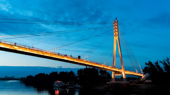 — можно сделать красивые фотографии на фоне визитной карточки Тюмени — Моста влюбленных;